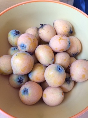 以前にご紹介していたと思うのですが、わが家のビワの実が色づいています
