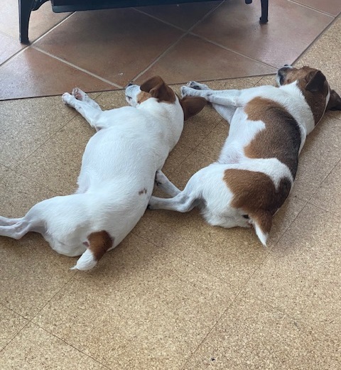 でも、家の中では暖かい場所の取り合いのはずがなんとシンクロ😜