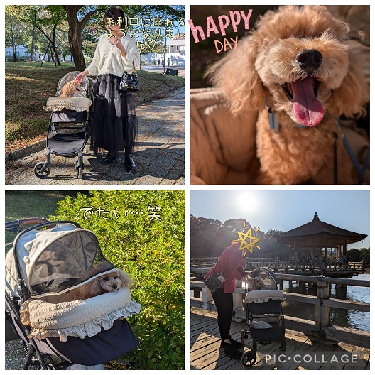 市内で用事があったのですがいいお天気だったのでペットカートを持って一緒に😆