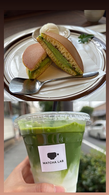 着いてから、抹茶のデザートに抹茶の飲み物を飲んでる私に、