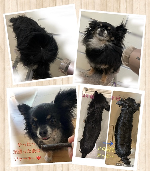 いつも体が濡れると小さく見えるのに…💭やっぱりダイエットが必要だな👍フィラリアの薬を小さくする為にも、まずは200g減が目標です💪✨