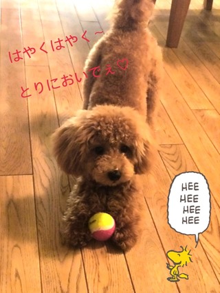 遊んで欲しい時はオモチャをくわえて潤んだ瞳を輝かせ上目づかいでみてきます≧(´▽`)≦