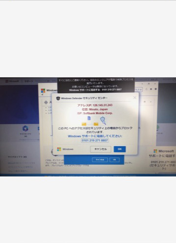ピーピーの音と共に「異常を発見直ぐにMicrosoftサポートセンターへ」の音声が…