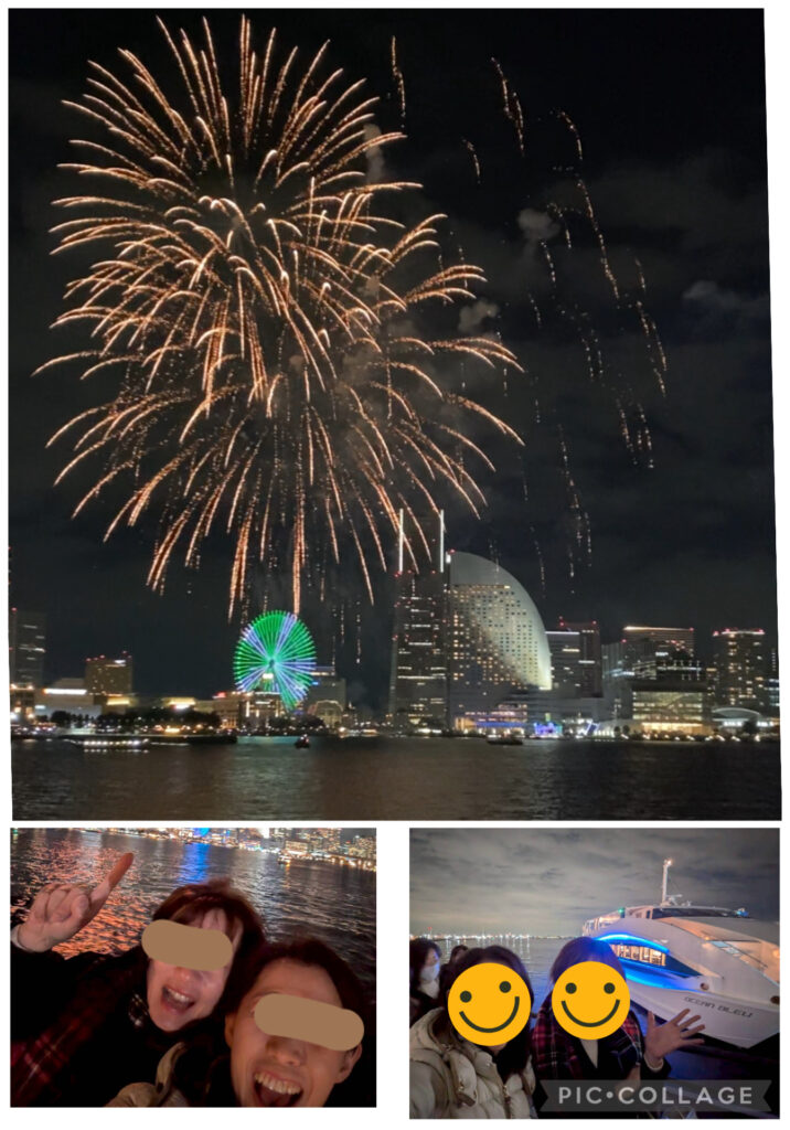 そしてこの日は、みなとみらいに花火が上がり、最高のクルーズとなりました。