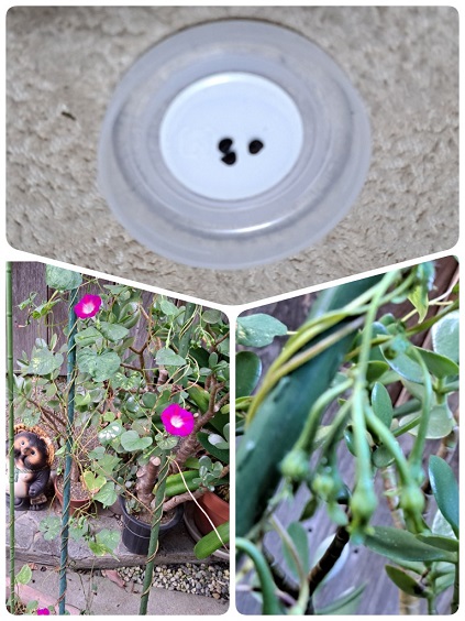 ちなみに、我が家の朝顔まだ先日小さな花が咲いてて、