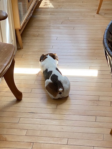 我が家の愛犬、お兄ちゃんはちょっとの隙間で日向ぼっこ