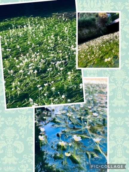 緩やかな川の流れに咲く、小さな白い花が可愛いく、涼しげな景色に暑さも少し和らいだかな(*´艸`)