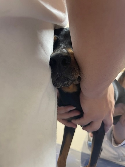 この日の六朗太は採血するとなるとお父さんの腕の中に入り顔を隠していて、