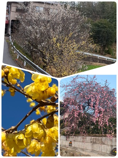 近くの道沿いでは、白梅、蝋梅、垂れ梅が綺麗に咲いてます😘