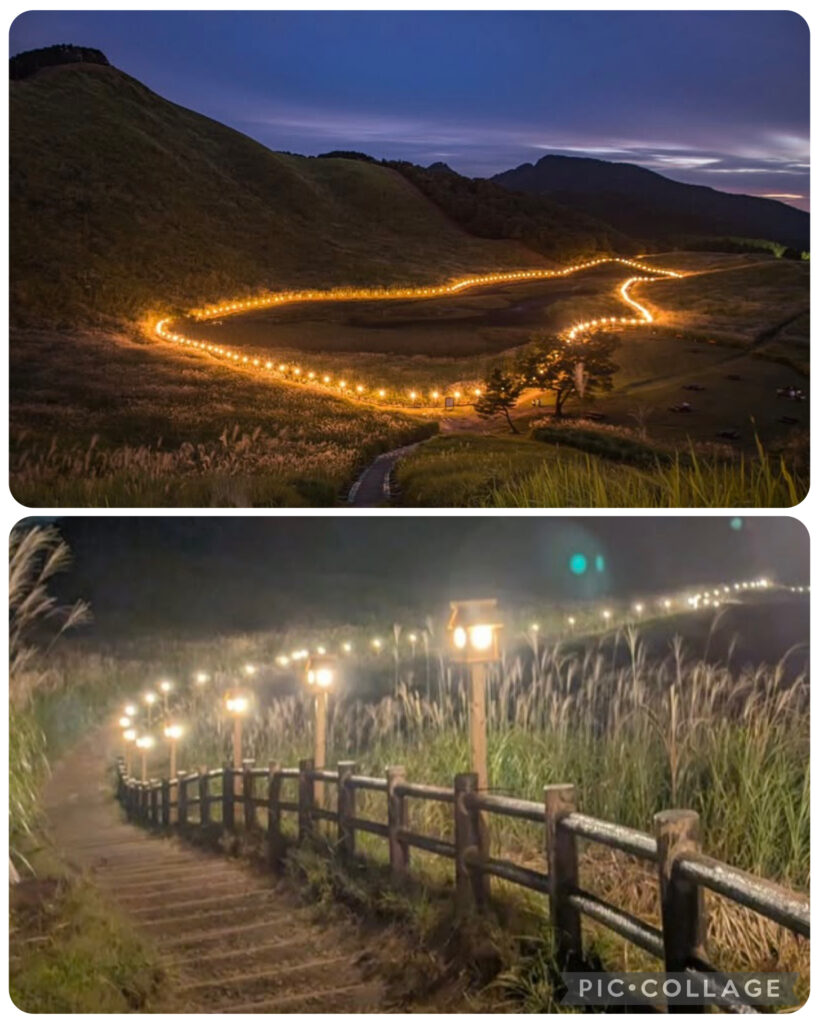 そして、日没より200個の灯籠が飾られ、曽爾高原の幻想的な山灯りにウットリでした😍