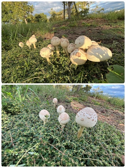 ポコポコと白いキノコが沢山【こんにちわ】していました🍄