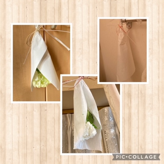 半紙で包み、水引で結び、トイレや玄関、リビングに吊るします。
