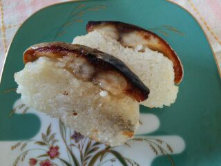 焼津の鯖をつかってつくる大きな鯖寿司です我が家にもできたてを届けてくれました私は昔から大好きで、好みの大きさにきって焼いて頂きます(*/∇\*)