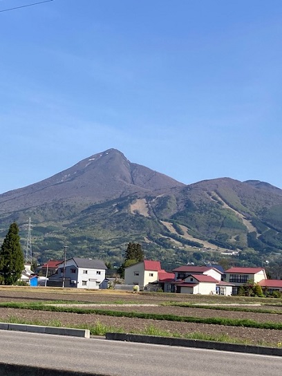 道中の立山連峰や月山にまだ雪が残っていて、美しい山並みでした。