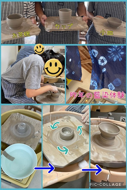 昨年の夏休みは藍染体験をしました。今年は電動ロクロを使った陶芸体験です🥰