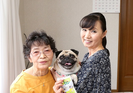 ハナちゃんで『犬康食・ワン』の良さを実感され、2代目のハルちゃん、3代目のスズちゃんにも、家にやって来た時から直ぐに『犬康食・ワン』を始められました。「3頭とも、本当にこれと言った病気もなく、体の中から元気だと感じています。とってもいい便をしますしね。毛の艶もいいですよ!」それでも、パグ犬は皮膚が弱く犬種特有の病気も多いので、月に1回は定期健診を受けておられるのだとか。体に負担がかかりそうな時などは『犬康食・ワン』を多めに与えたりと、きめ細やかにお世話されています。